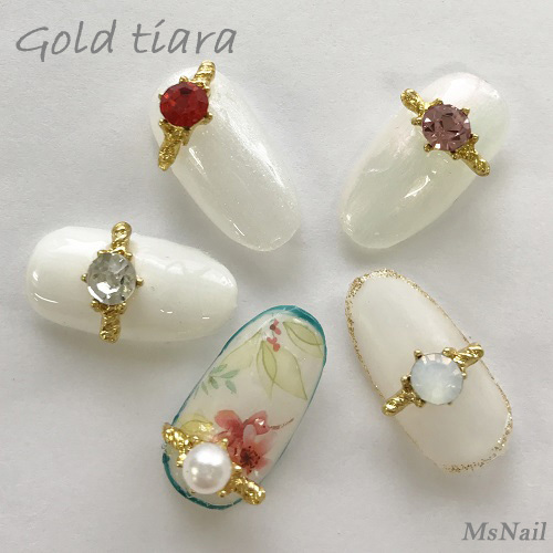 ネイルジュエリー ゴールドティアラ パール 2個 TG001[メール便OK]