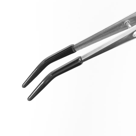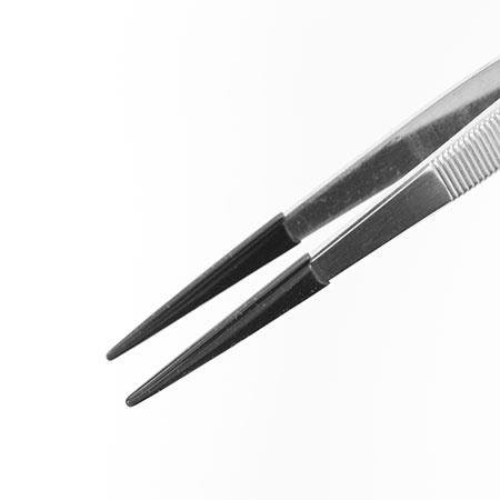 先端にラバーがついており、滑りやすいパーツを扱う時や細かい作業時に安定感を持たせられるツイザーです。