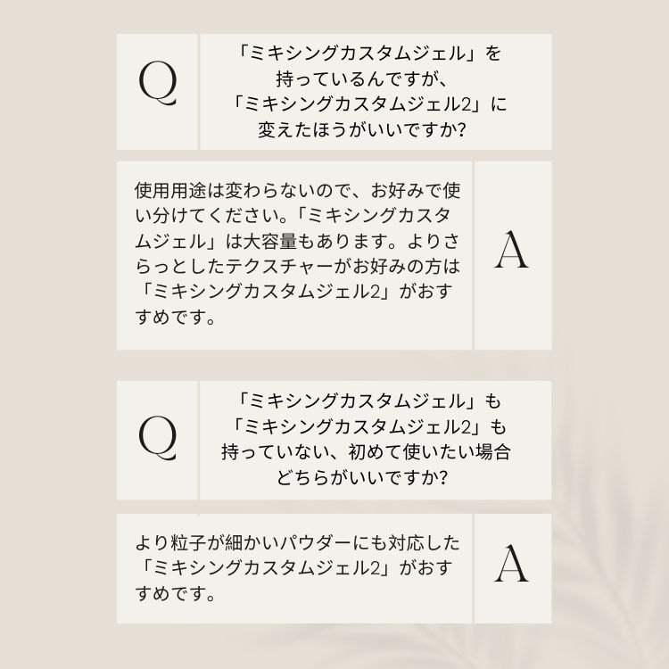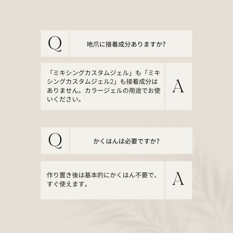 ※作り置き後は基本的にかくはん不要ですが、作り置きジェルの保存などはご自身の責任の元お早めにご使用ください。