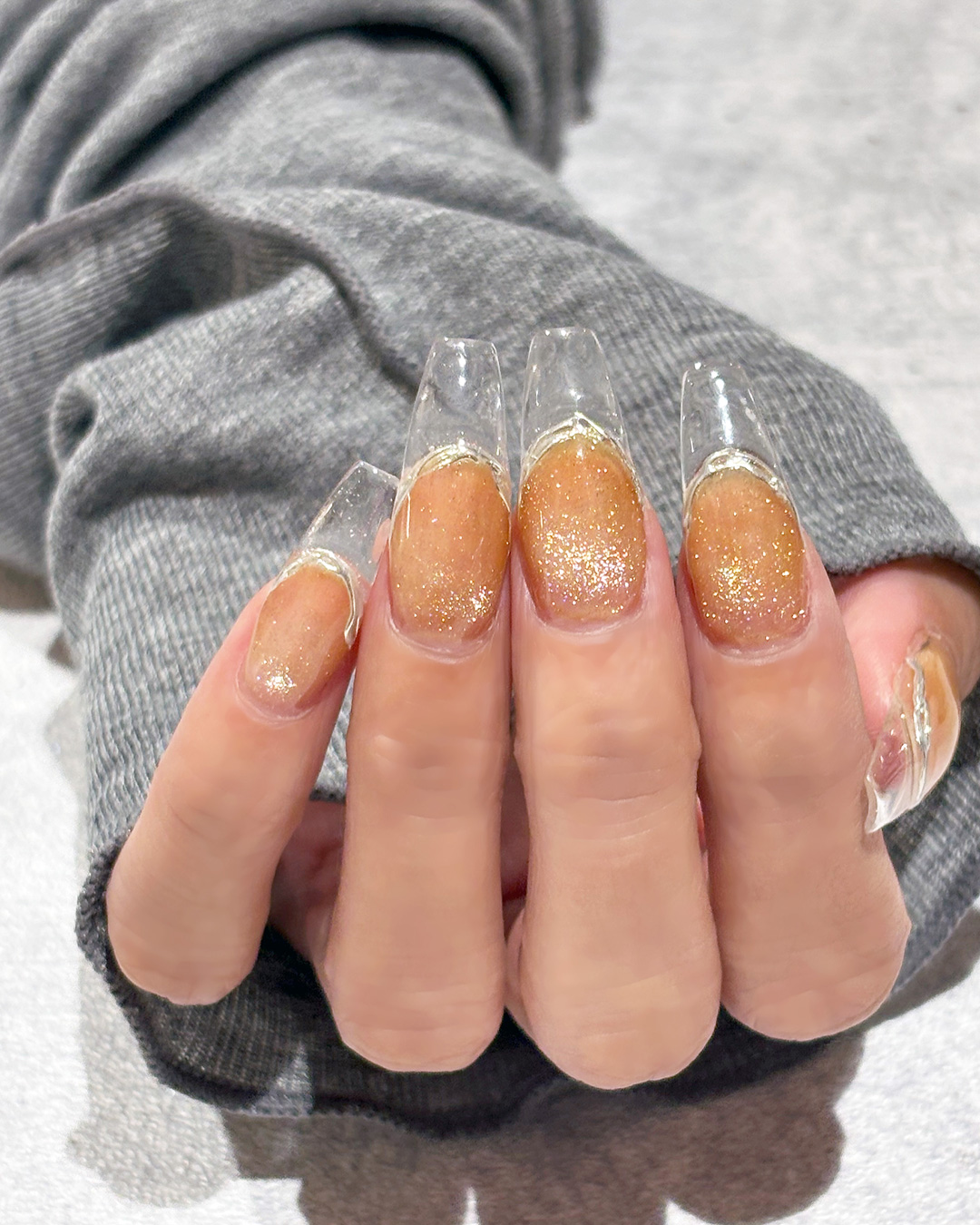 シルバーホワイトの輝きが指先に透明感と奥行きを生み出す。