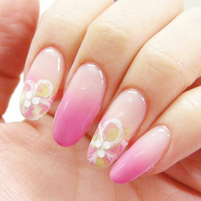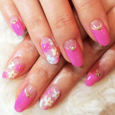 お好みのカラージェルやアートを施しライトで照射します。(UV36W・LED3Wで約30秒)