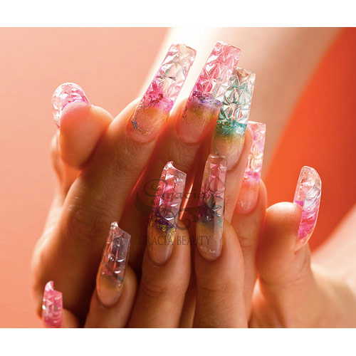 モザイクチップの凹凸に埋め込むように塗布することによって、これまで見たことのないような美しいステンドグラス調のジェルネイルが楽しめます。 粘度が高いジェルですので1色でのジェルスカルプチュアにもお使い頂けます。
