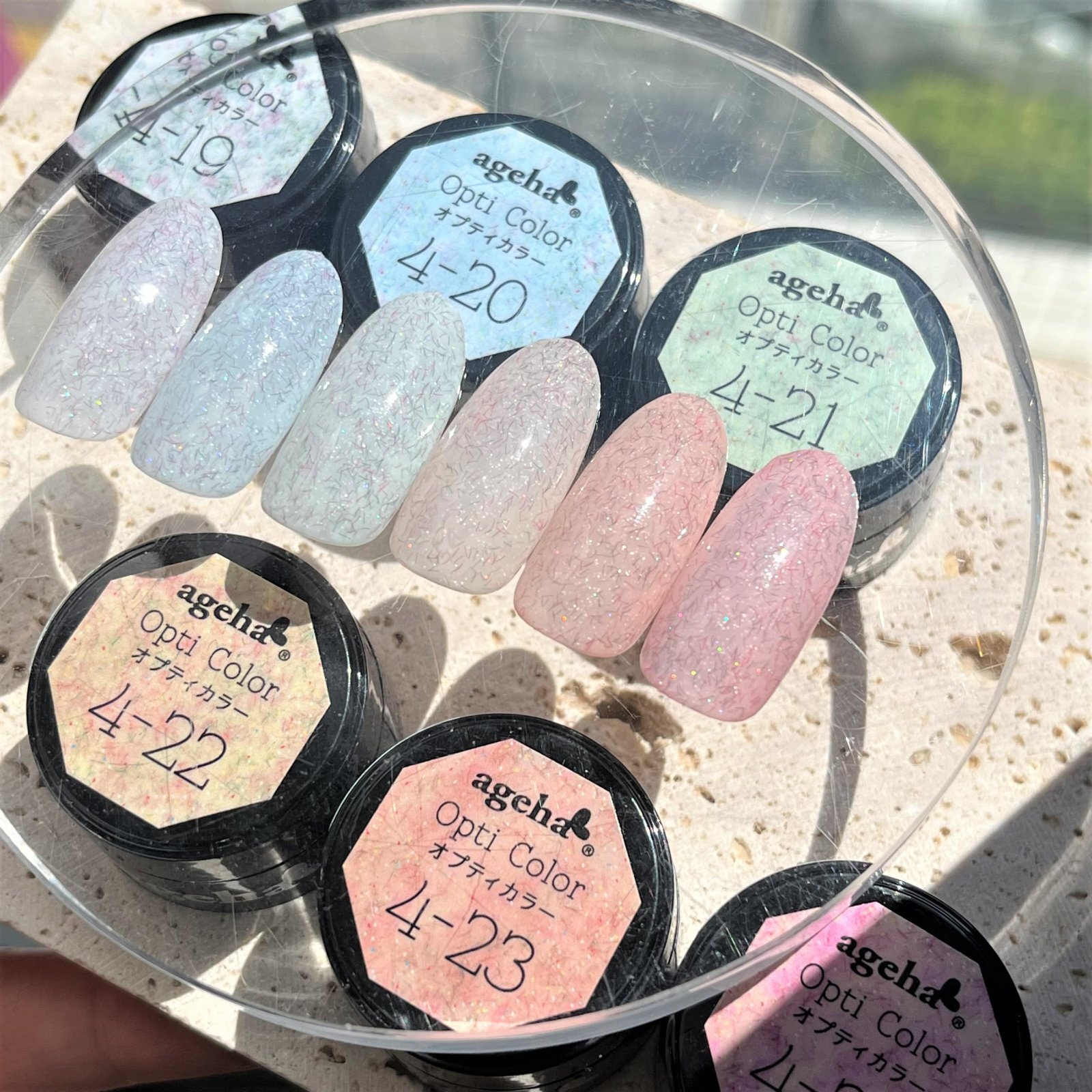 agehaジェルらしく、夏でも可愛いファイバーとグリッターが入った新しい質感のジェル!