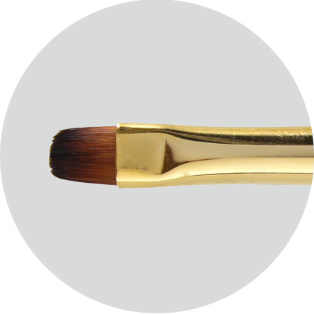 毛幅が広く、先端はキューティクルの形に合わせた形状のため少ないストロークで綺麗に塗ることができます。