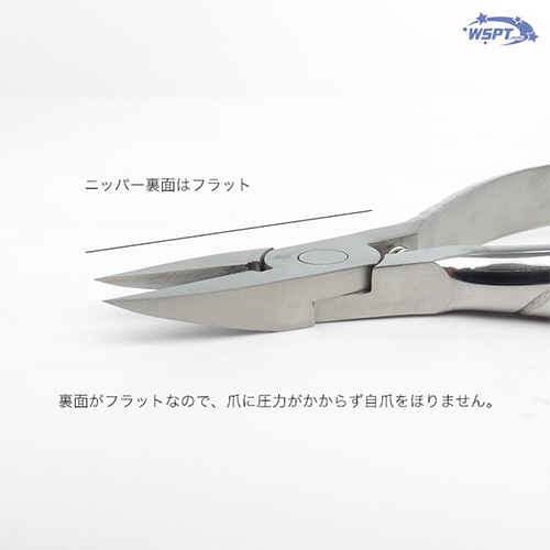 ニッパー裏面は、フラットになっており、爪に圧力がかからず、自爪をほりません。