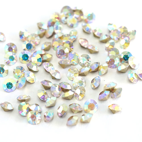 Vカットストーン クリスタルAB ラウンド 3-5mm[メール便OK]