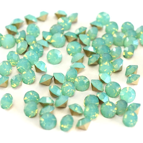 Vカットストーン グリーンオパール ラウンド 3-5mm[メール便OK]