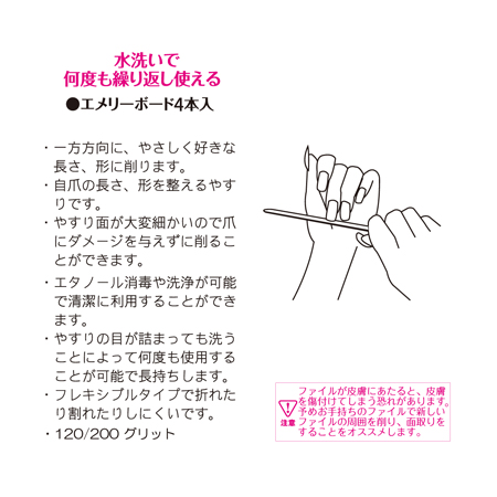 ・やすり面が大変細かいので爪にダメージを与えずに削る事ができます。