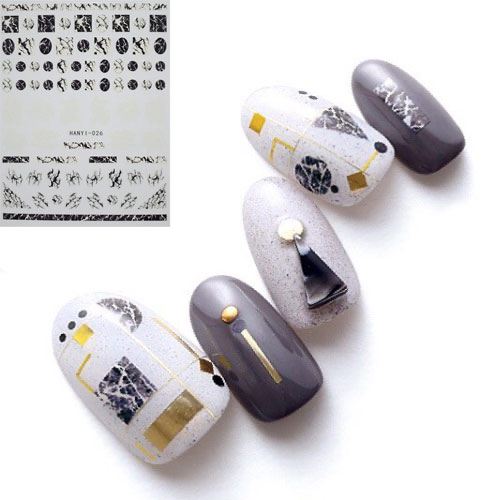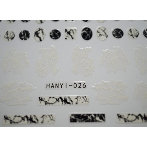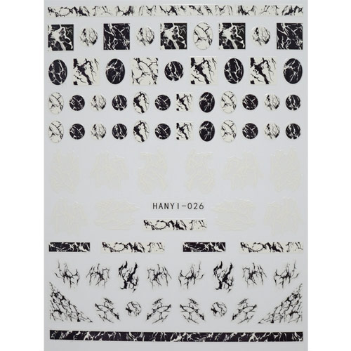 訳あり★ネイルシール マーブルストーン モノトーン HANYI-026 ※パッケージなし[メール便OK]