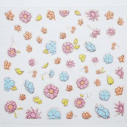 ビー・エヌ 3Dラバーアート フラワーシール 水彩画風フラワー ブルー FWO-1 ※パッケージなし[メール便OK]