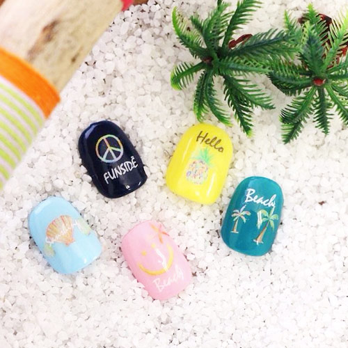 マニキュアの場合、マニキュアが乾いた状態でシールをのせてください。