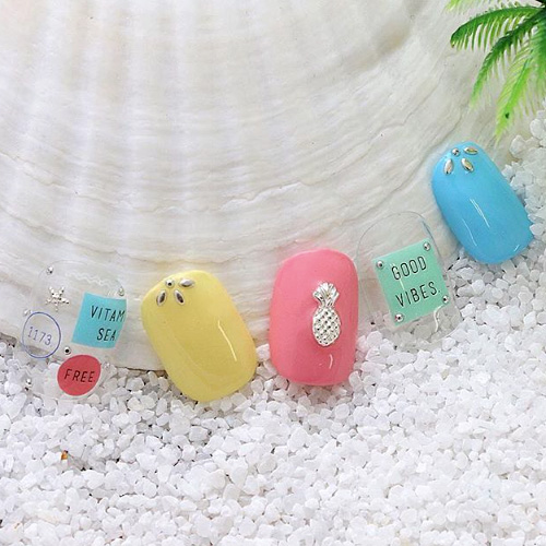 マニキュアの場合、マニキュアが乾いた状態でシールをのせてください。