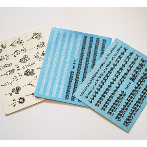 数量限定★お得なネイルシール3枚セット(レース&モノクロ) ※パッケージなし[メール便OK]