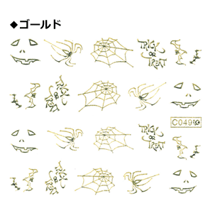 ウォーターネイルシール メタルパーツ ハロウィンII ゴールド/シルバー C049[メール便OK]