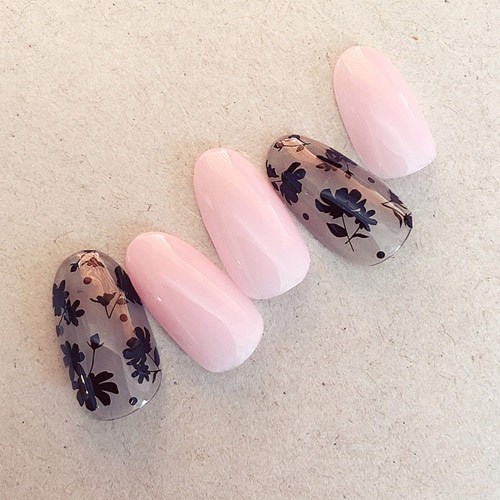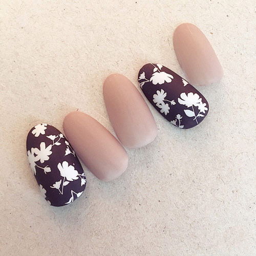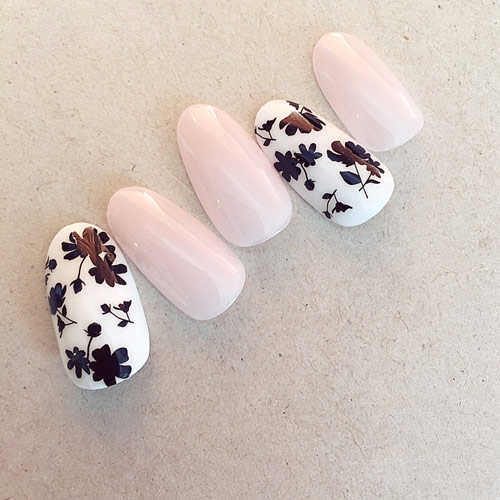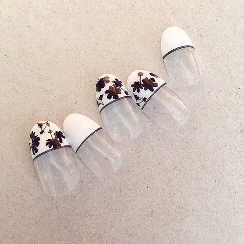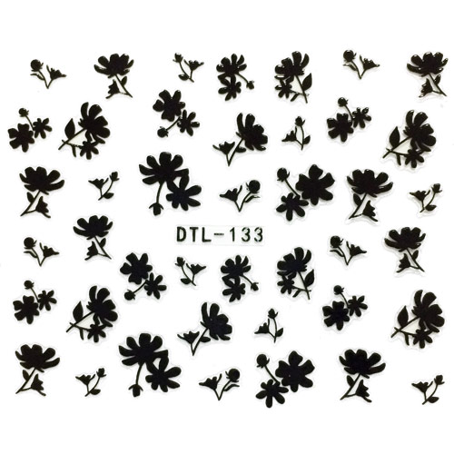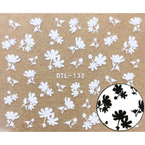 ネイルシール 花シルエット ホワイト/ブラック DTL-133[メール便OK]