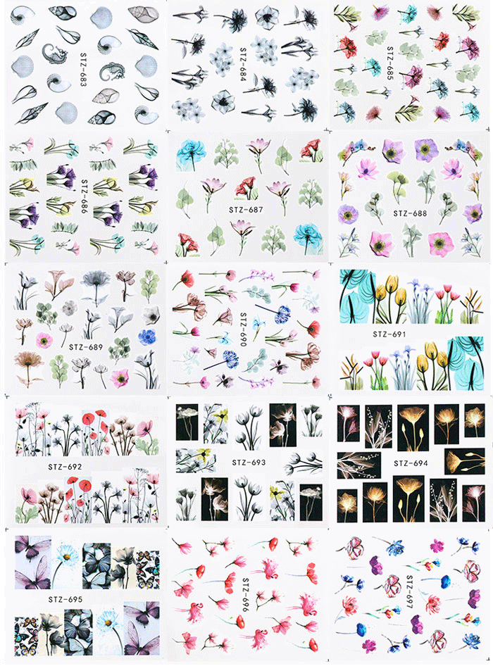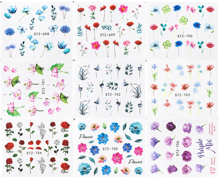 お得な24枚セット★ウォーターネイルシール フラワー ミックス/1枚45円[メール便OK]