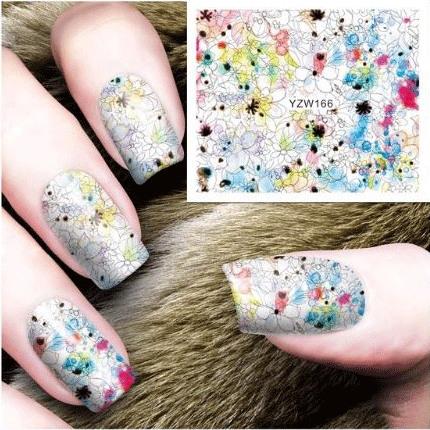 ウォーターネイルシール 水彩フラワー YZW-166[メール便OK]