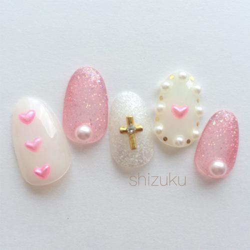 ※ハートのパールはカラーコーティングしておりますので、トップコートの種類によって色落ちする場合がございます。