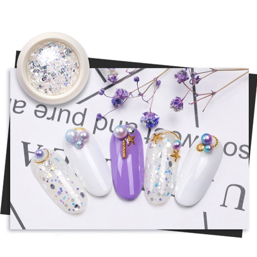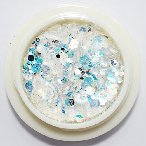 大小・丸・六角のラメがミックスされたオーロラホログラム。