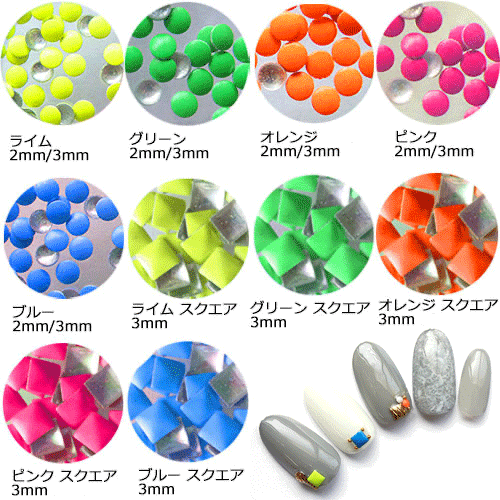 ネオンスタッズ 2mm/3mm 全15種類 約100P[メール便OK]