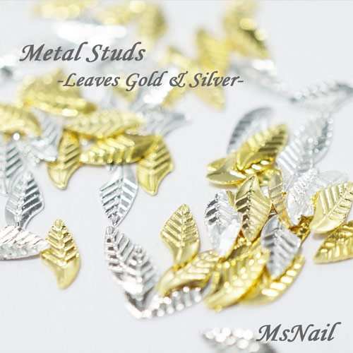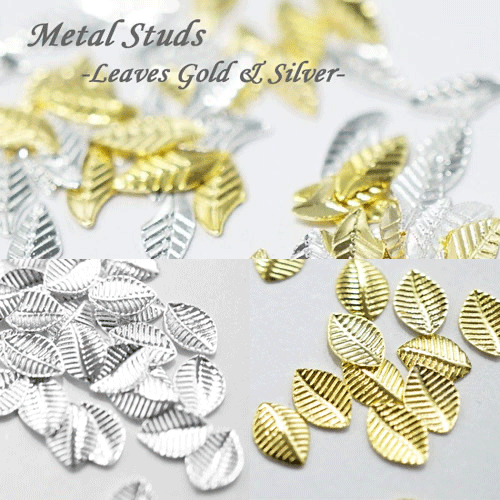 メタルパーツ リーフ ゴールド&シルバー 2x5mm 100個[メール便OK]